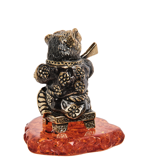 AM-1836 Фигурка «Медведь музыкант» (латунь, янтарь)