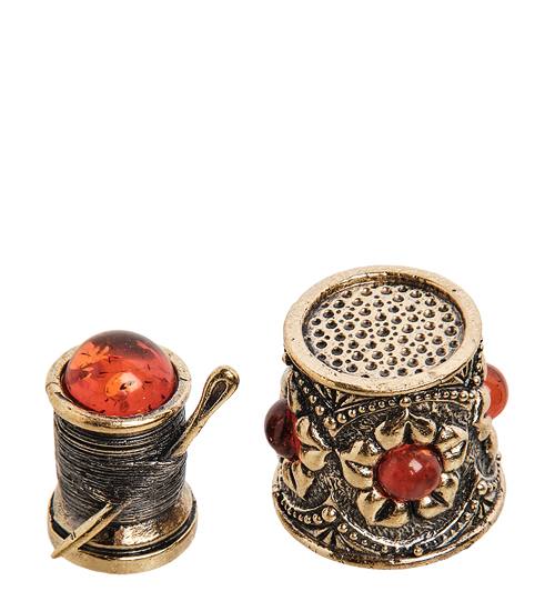 AM-2153 Наперсток «Ажурный с катушкой» (латунь, янтарь)