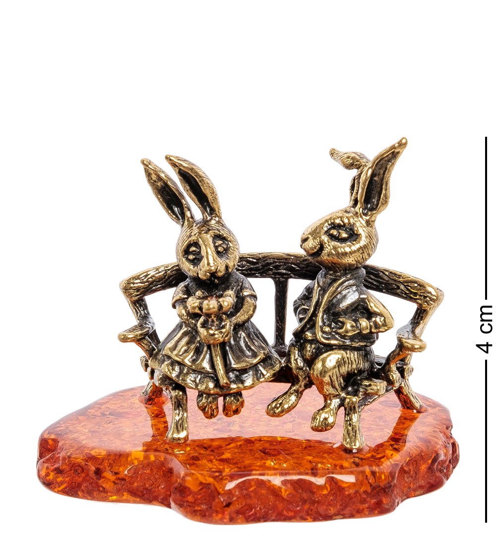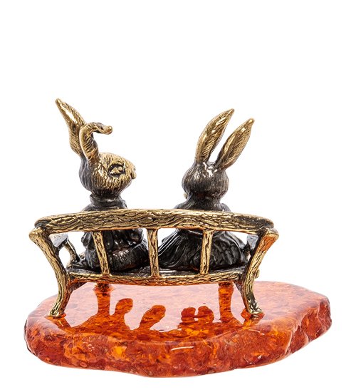 AM-2217 Фигурка «Парочка зайчат» (латунь, янтарь)