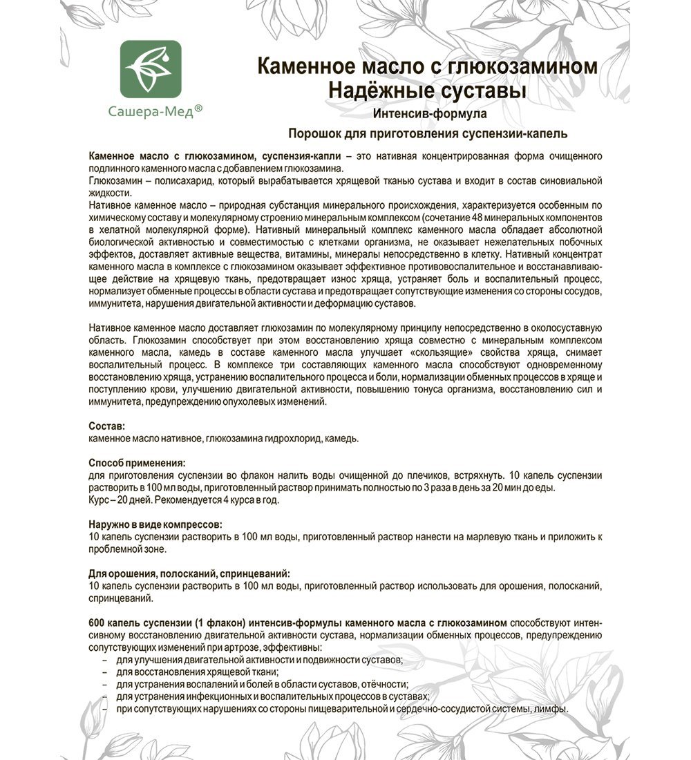 MED-13/21 «Каменное масло» Суспензия - капли с глюкозамином. Надёжные суставы, 3,0 г