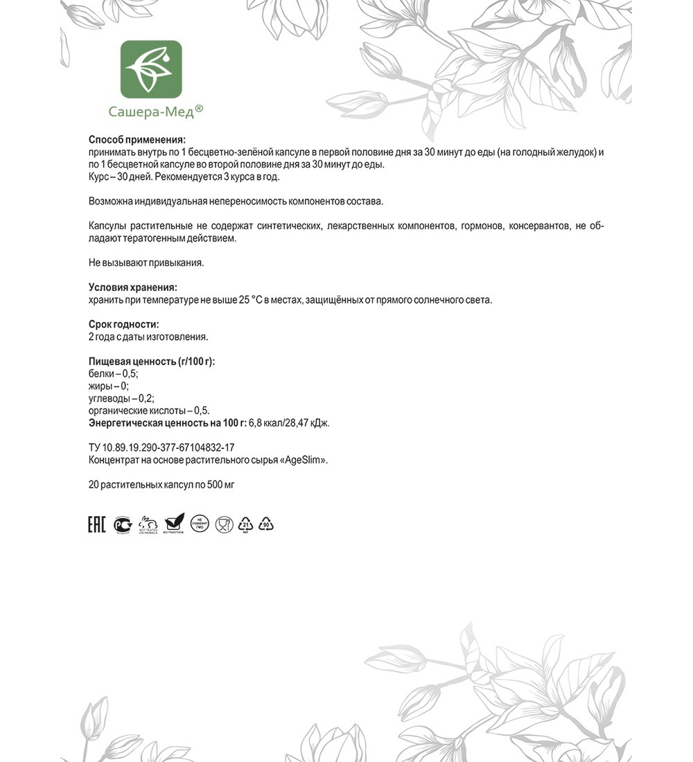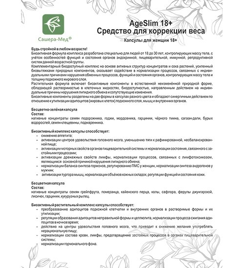 MED-39/01 «AgeSlim 18 +» Капсулы, №20*0,5 г