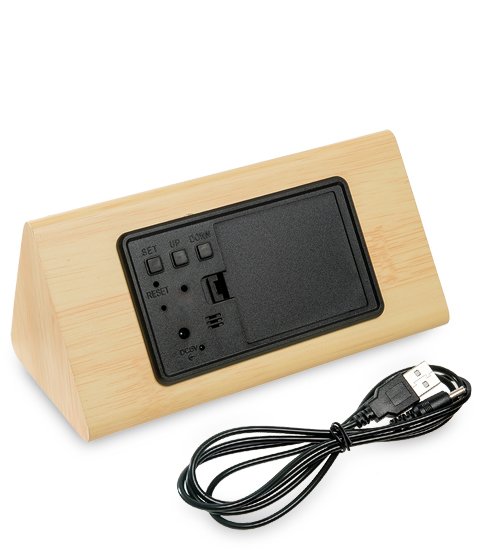 ЯЛ-07-02/ 2 Часы электронные треуг. (жёлтое дерево с оранжевой подсветкой)