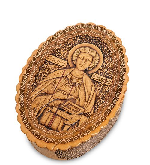 BST-140 Шкатулка «Святой Целитель Пантелеймон» (береста)