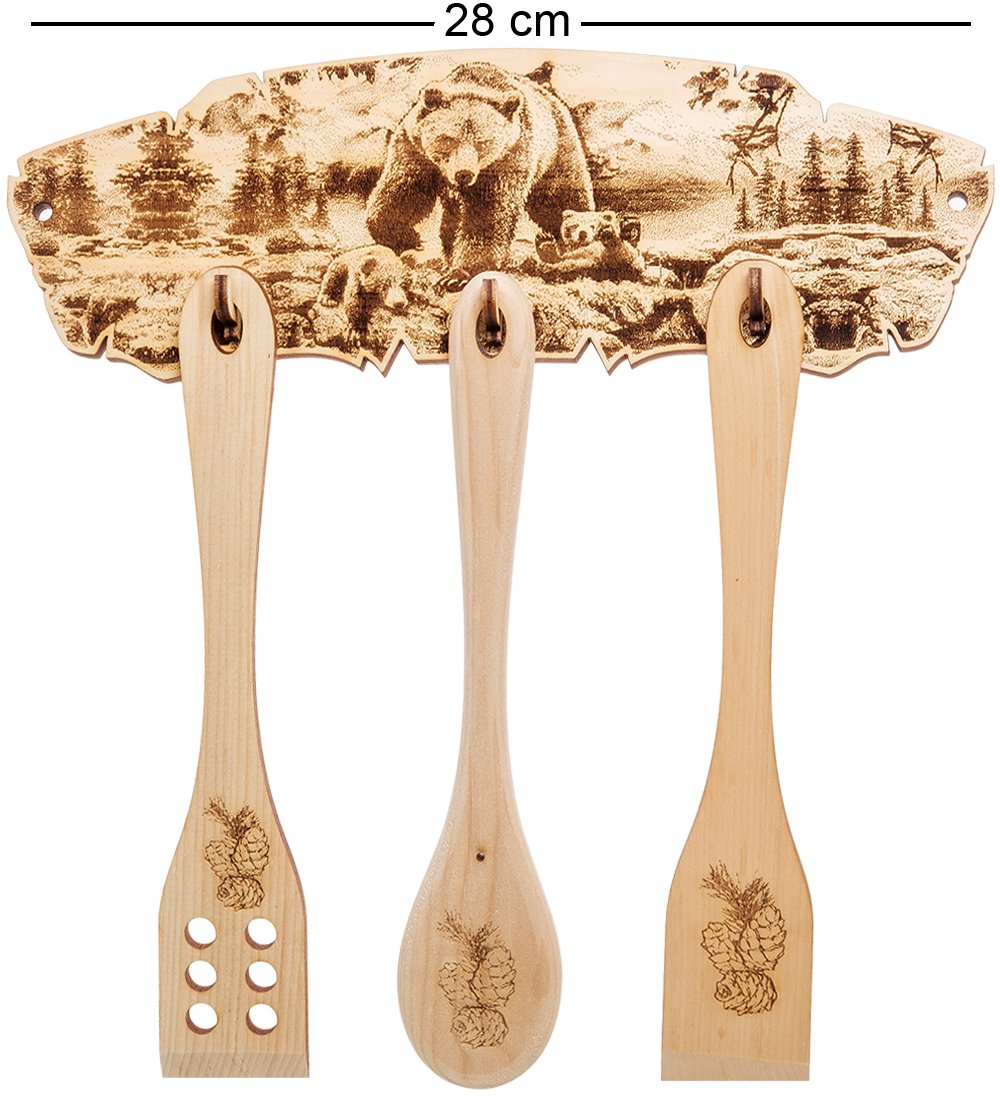 КД-22/007 Набор из лопаток кедровых и ложки «Медведи»