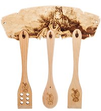 КД-22/001 Набор из лопаток кедровых и ложки «Волки»