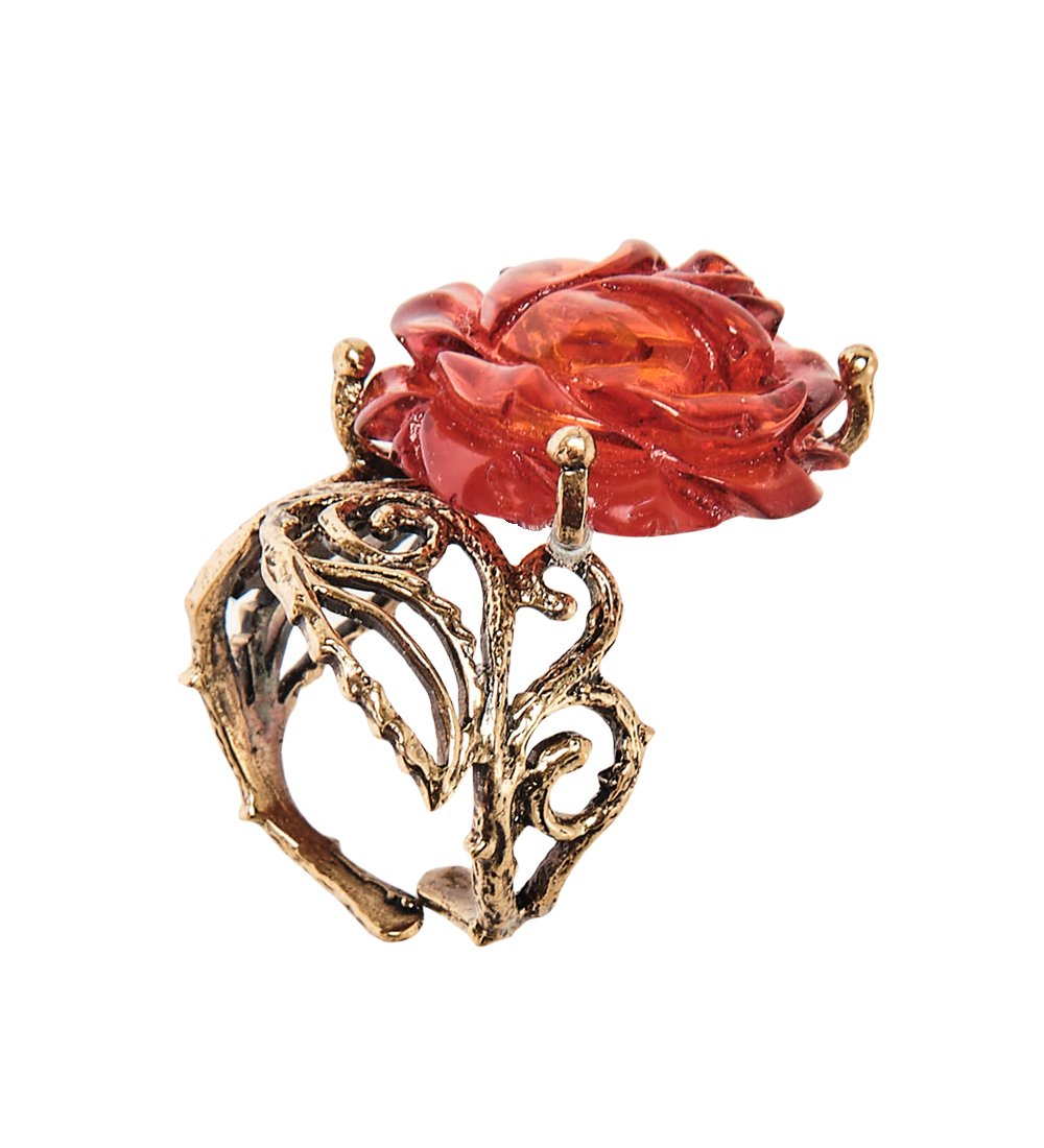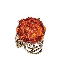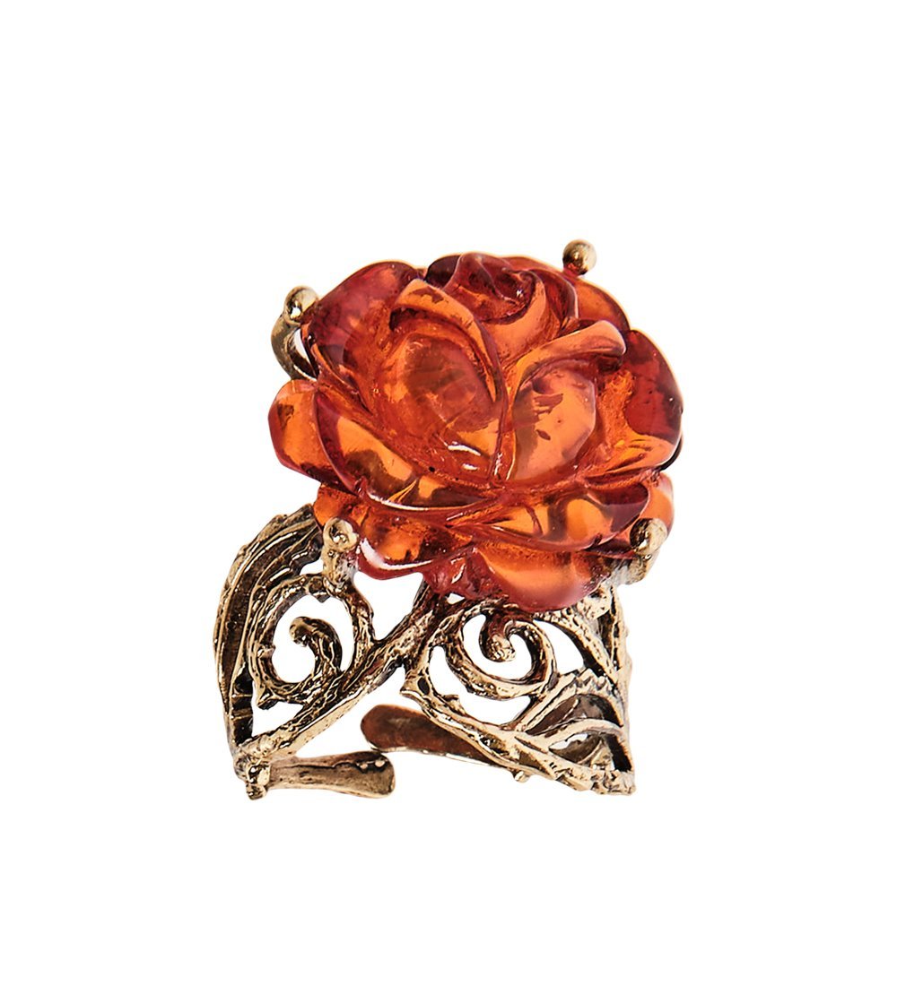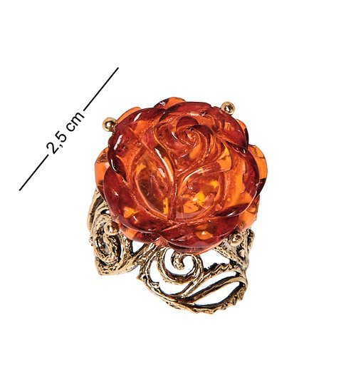 AM-2490 Кольцо «Розочка ажурна» (латунь, янтарь)