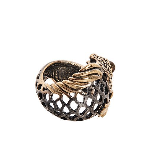 AM-2494 Кольцо «Рыбка золотая» (латунь, янтарь)