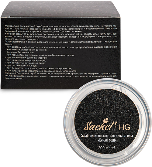 MED-01/70 «Сашель» HG скраб-ревитализант для лица и тела ЧЕРНАЯ СОЛЬ, 200 мл