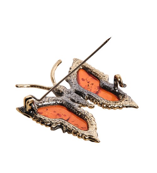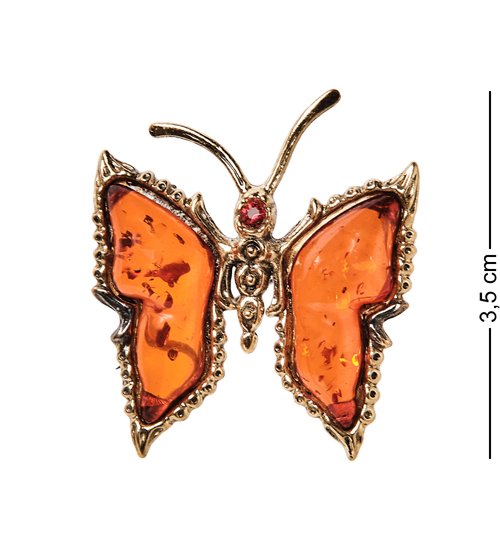 AM-2546 Брошь «Бабочка со стразами» (латунь, янтарь)