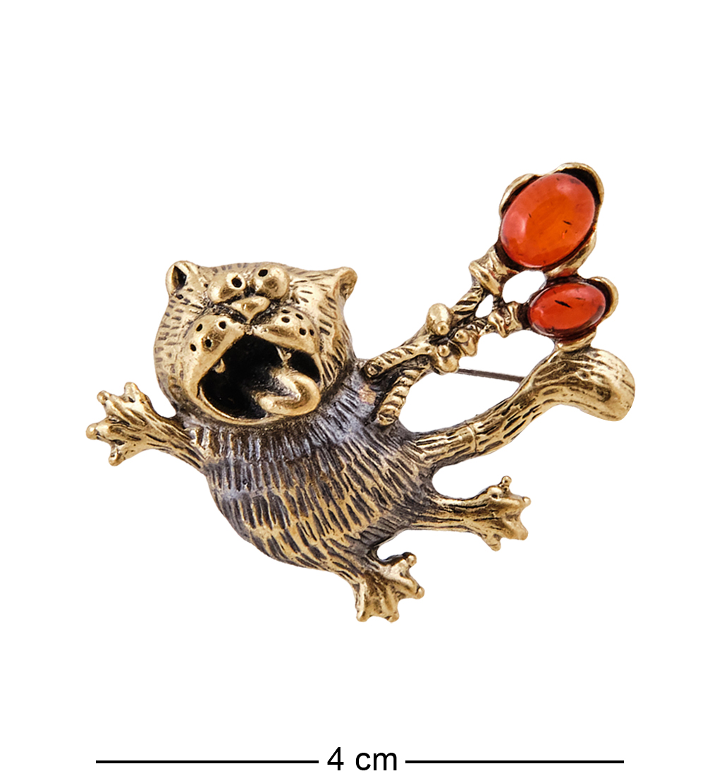 AM-2580 Брошь «Кот Первомай» (латунь, янтарь)