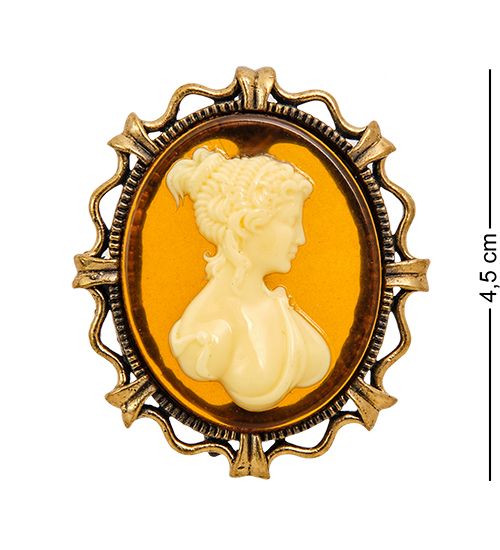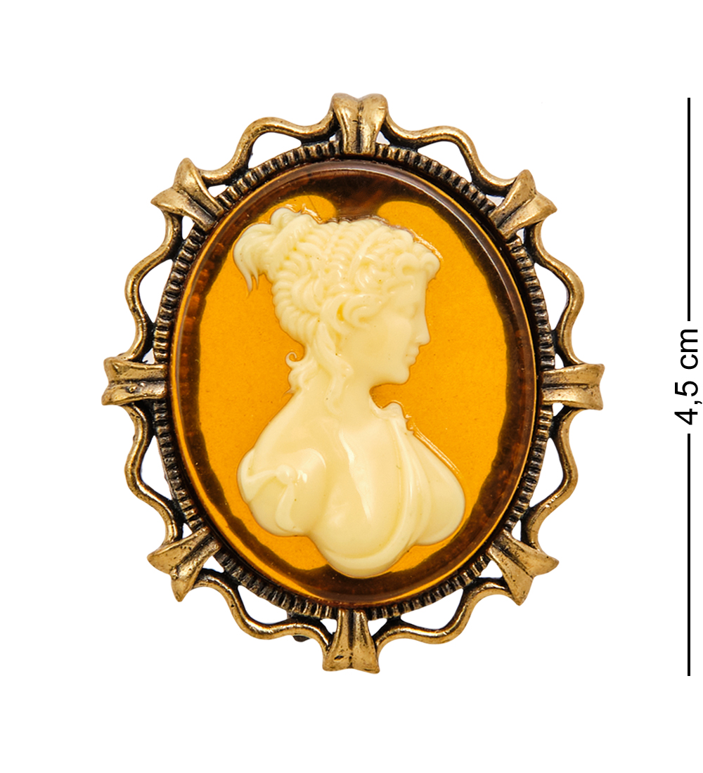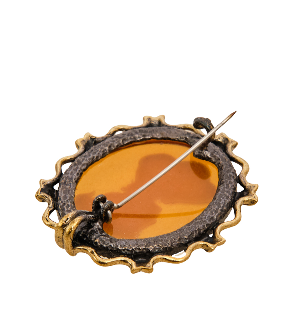 AM-2597 Брошь «Камея» (латунь, янтарь)