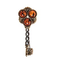 AM-2604 Брошь «Ключ в Нарнию» (латунь, янтарь)