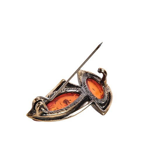 AM-2631 Брошь «Парусник» (латунь, янтарь)