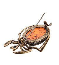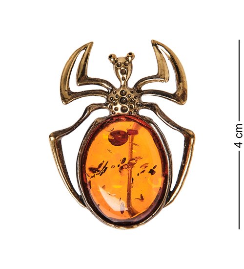 AM-2633 Брошь «Паук Хелицер» (латунь, янтарь)