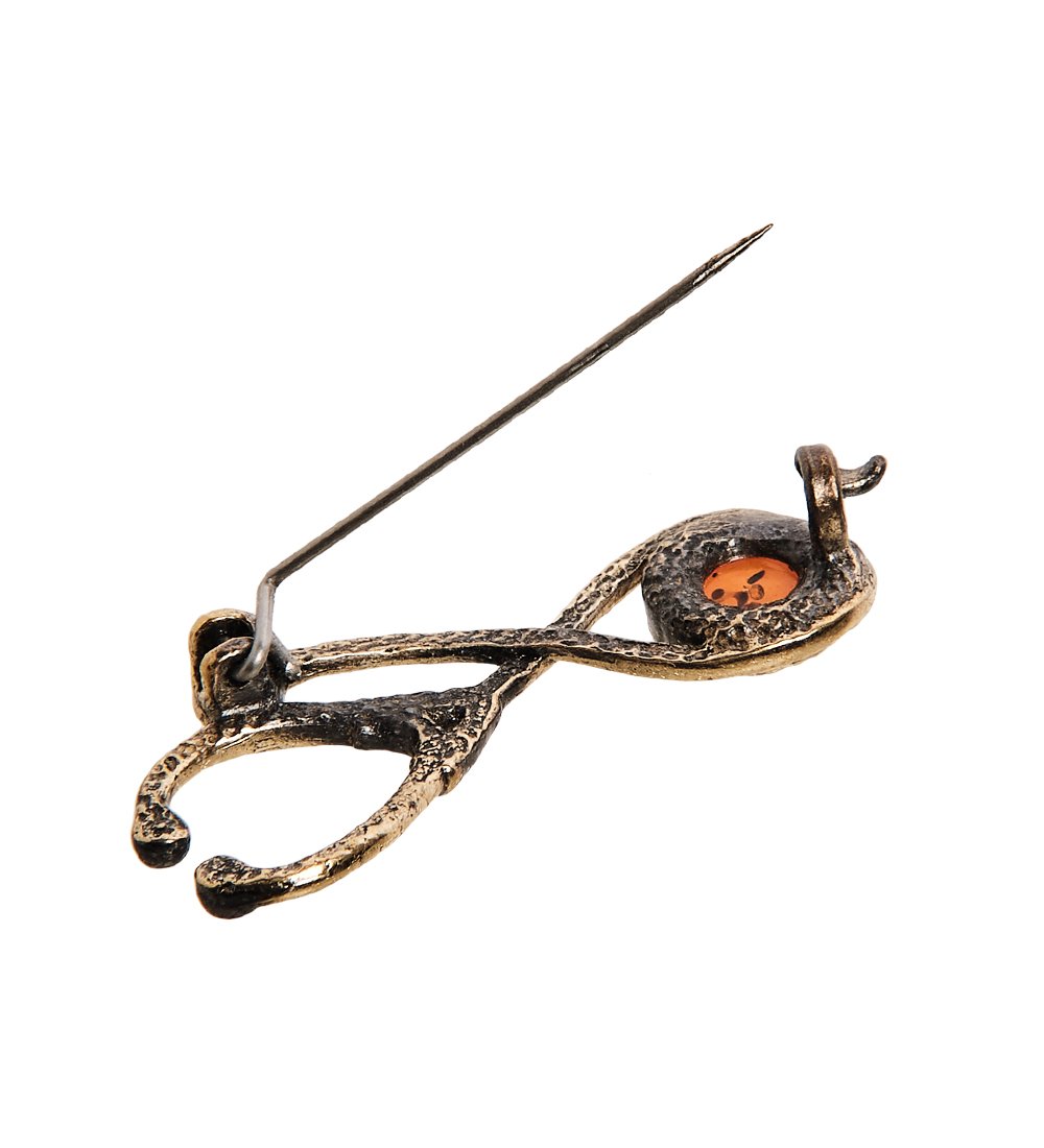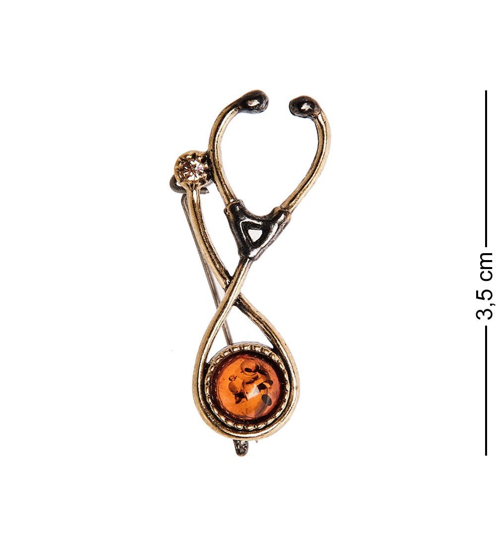 AM-2644 Брошь «Стетоскоп» (латунь, янтарь)