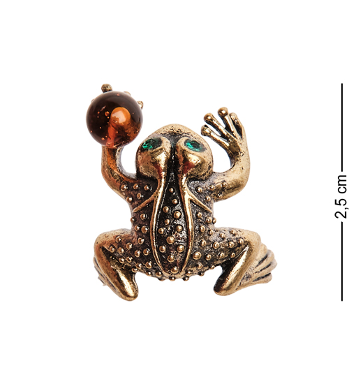 AM-2673 Кольцо «Лягушка с шариком» (латунь, янтарь)