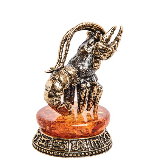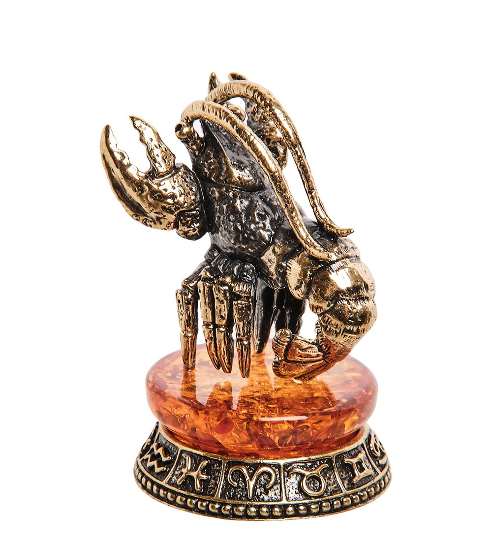 AM-2742 Фигурка «Знак зодиака-Рак» (латунь, янтарь)