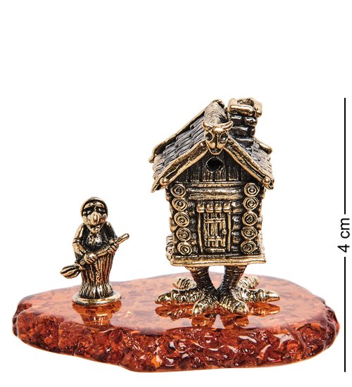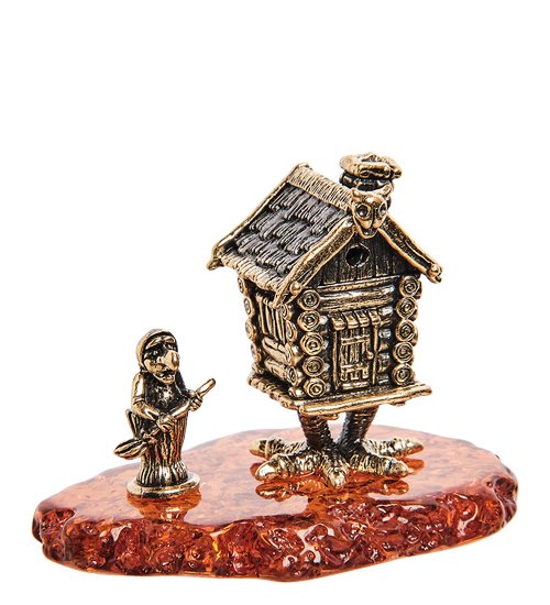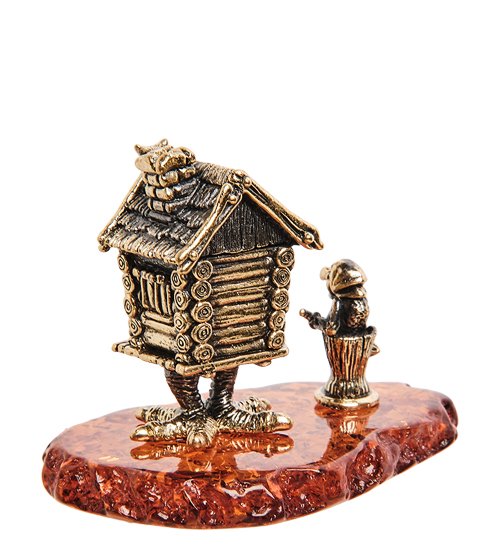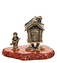 AM-2757 Фигурка «Избушка с Бабой Ягой» (латунь, янтарь)