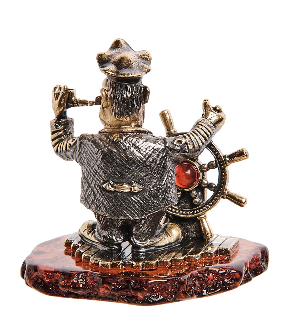 AM-2759 Фигурка «Капитан у штурвала» (латунь, янтарь)
