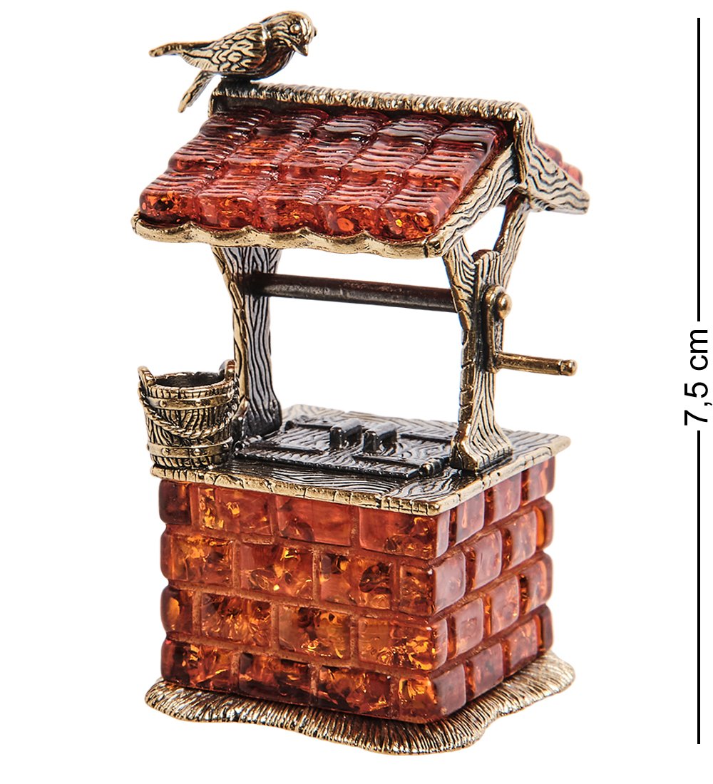AM-2763 Фигурка «Колодец с птичкой» (латунь, янтарь)