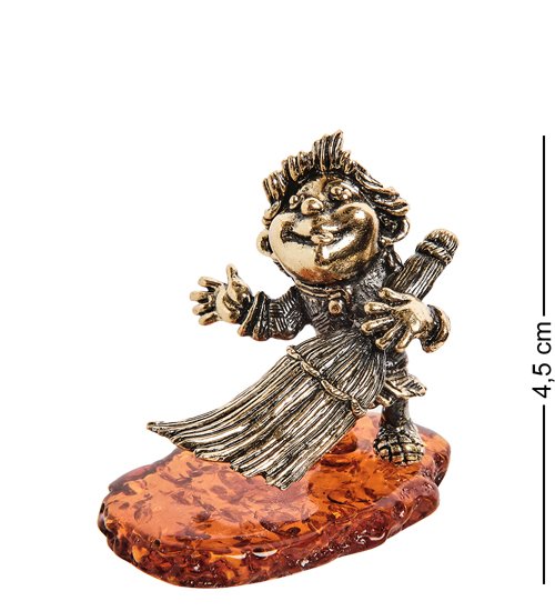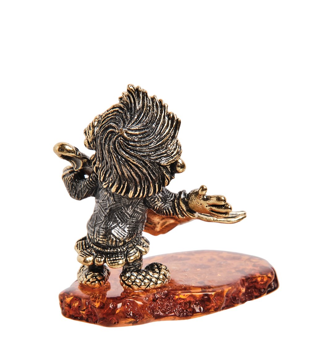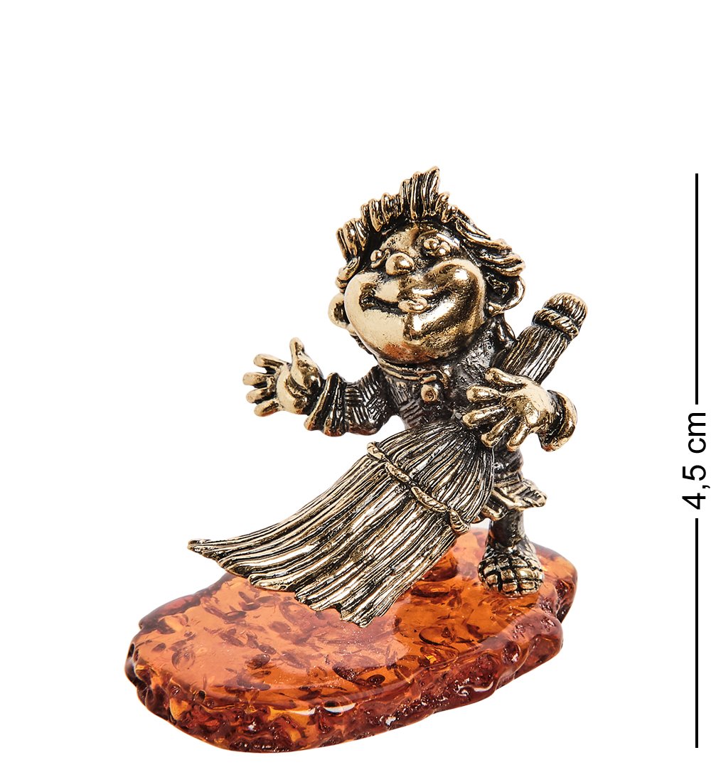 AM-2785 Фигурка «Домовенок с метлой» (латунь, янтарь)
