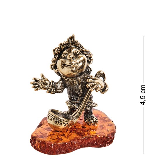AM-2786 Фигурка «Домовенок с поварешкой» (латунь, янтарь)
