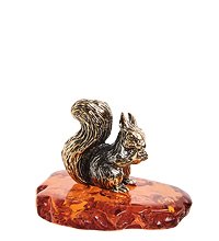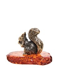 AM-2804 Фигурка «Белочка» мал. (латунь, янтарь)