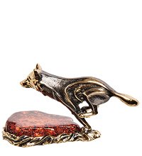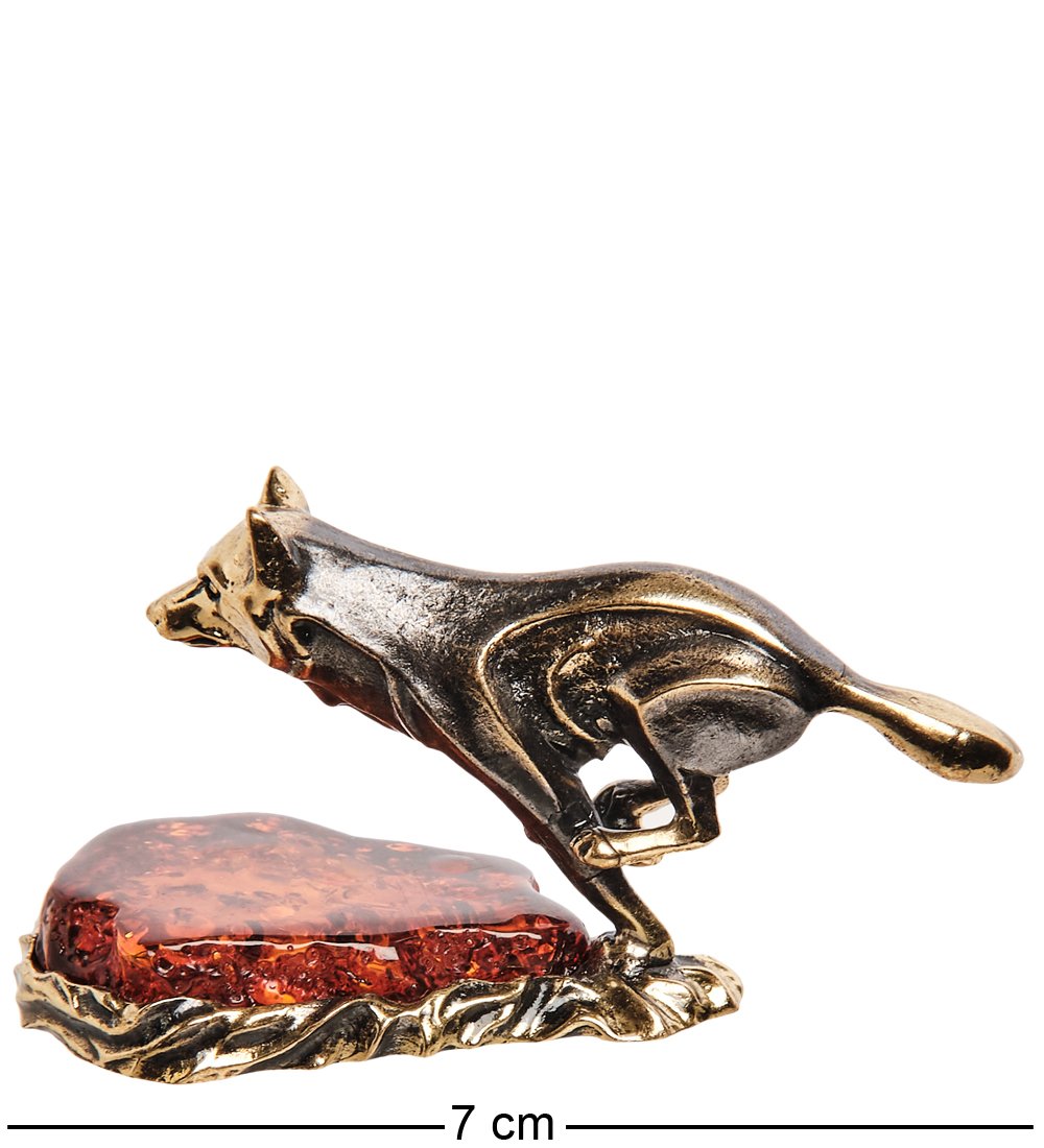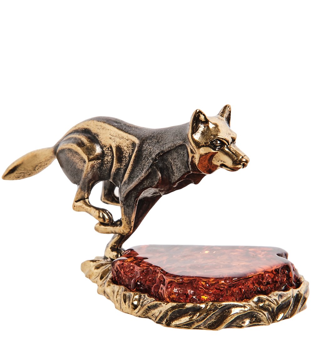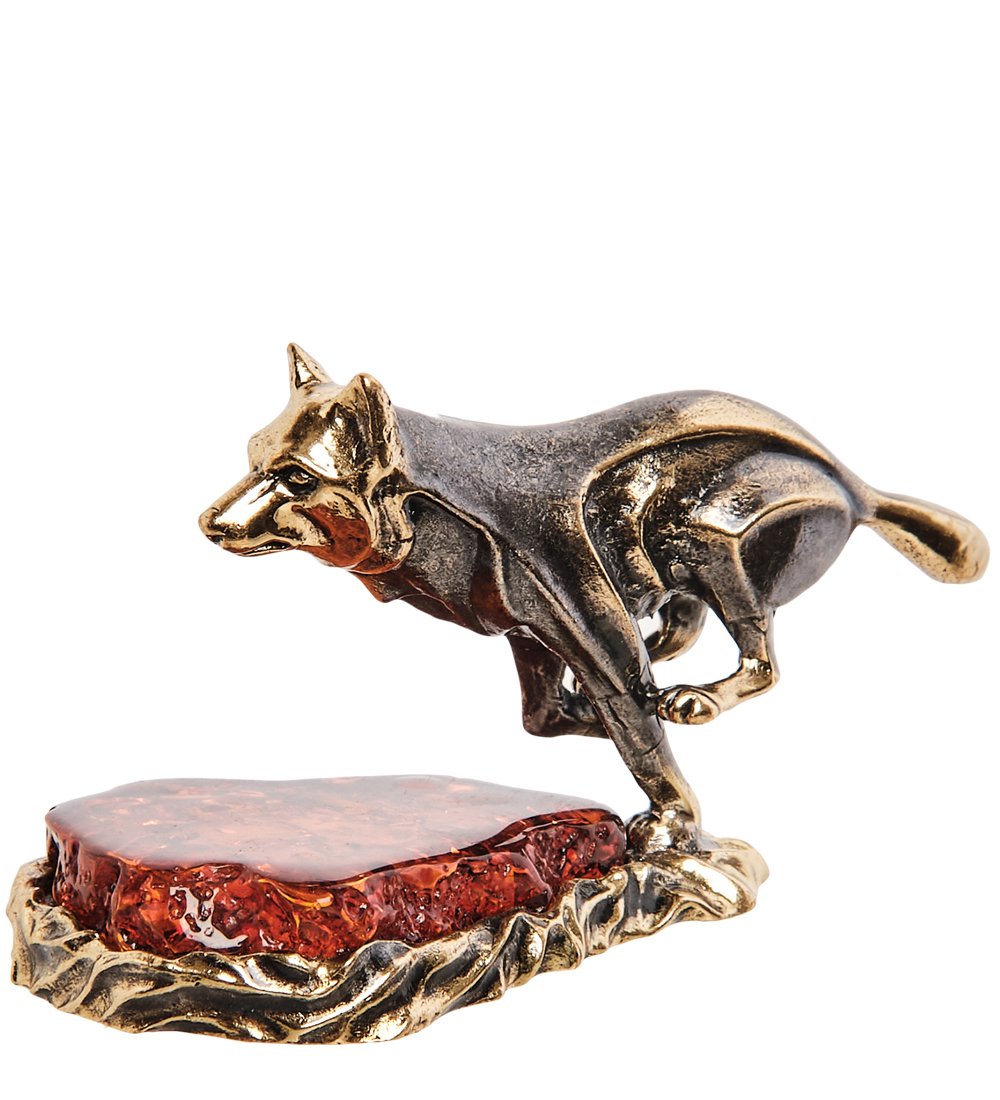AM-2808 Фигурка «Волк Охотник» (латунь, янтарь)
