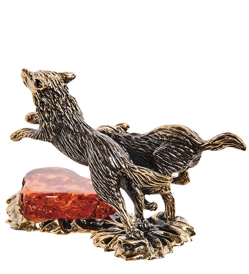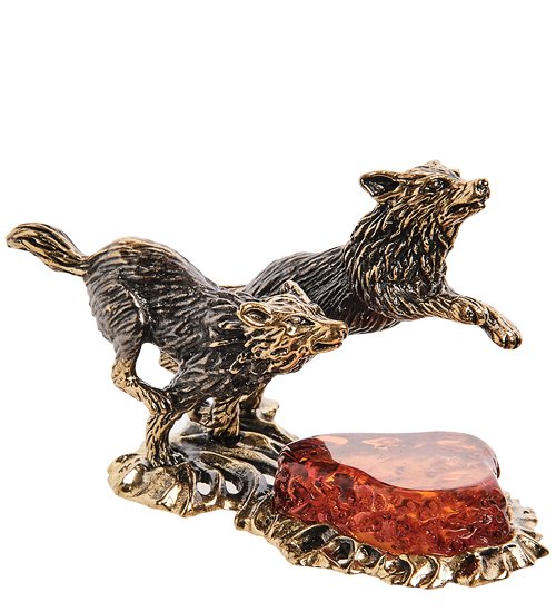 AM-2809 Фигурка «Стая волков» (латунь, янтарь)