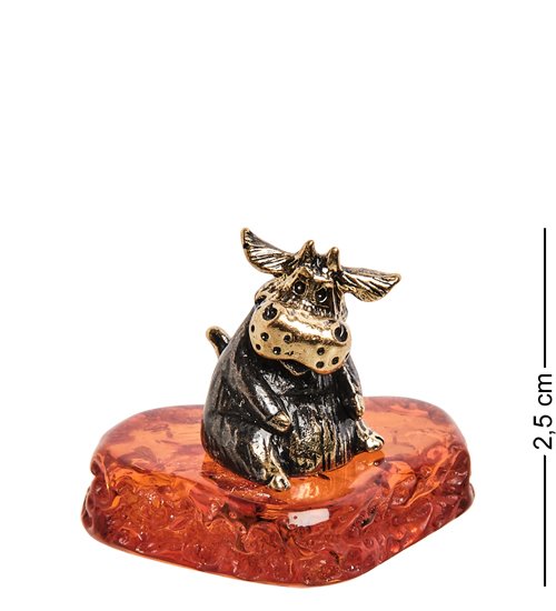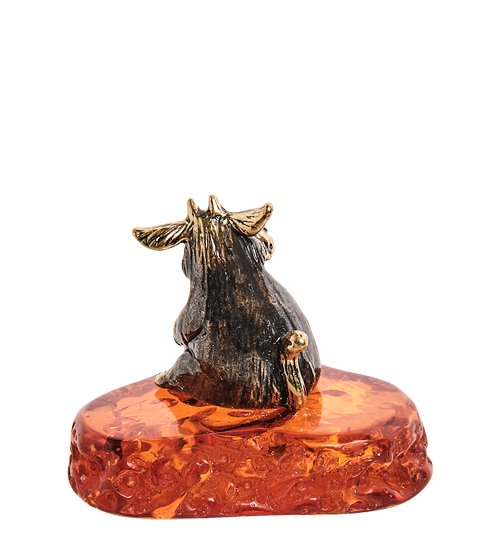 AM-2834 Фигурка «Бычок пухляш» (латунь, янтарь)