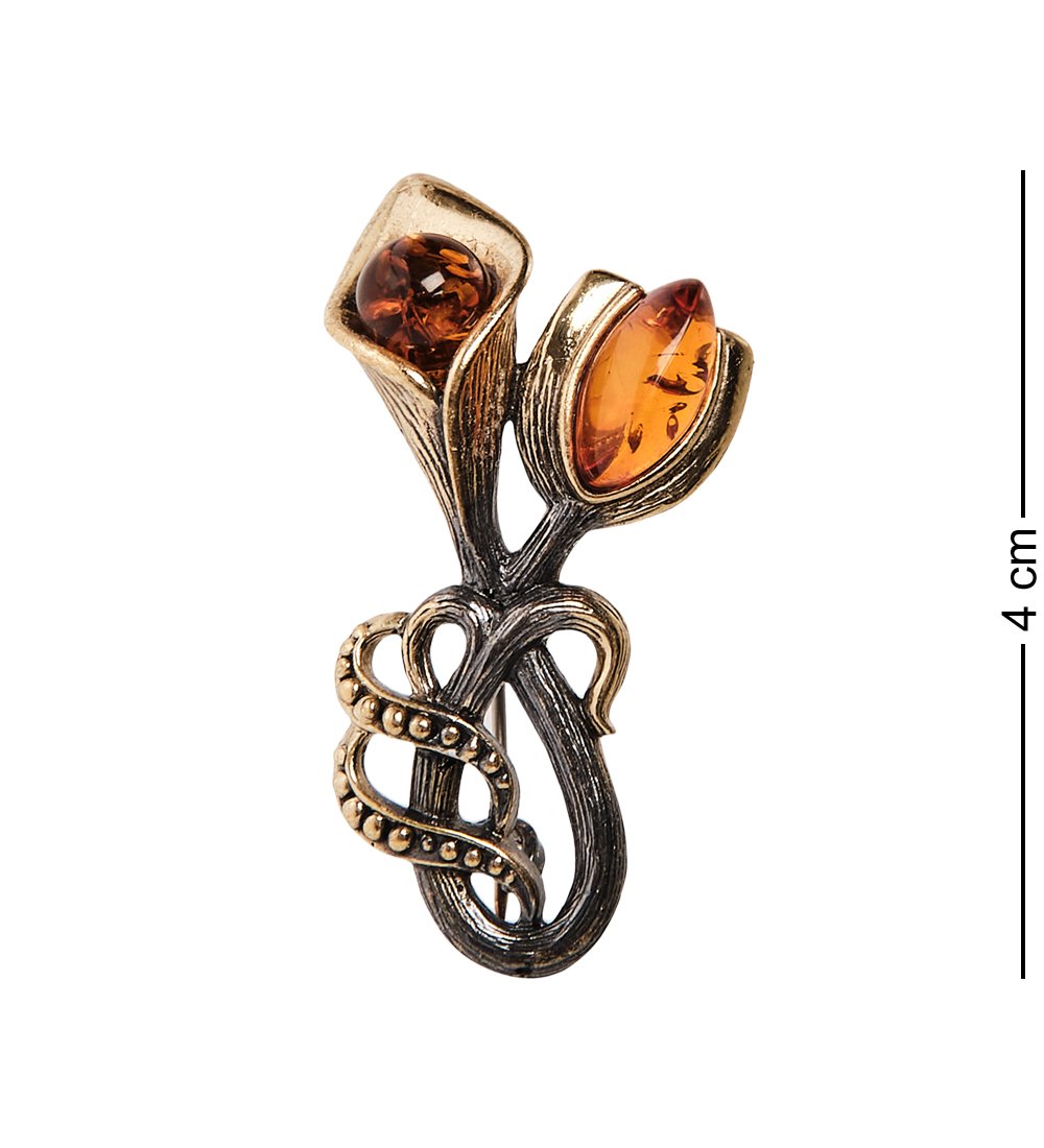 AM-2843 Брошь «Калла композиция» (латунь, янтарь)