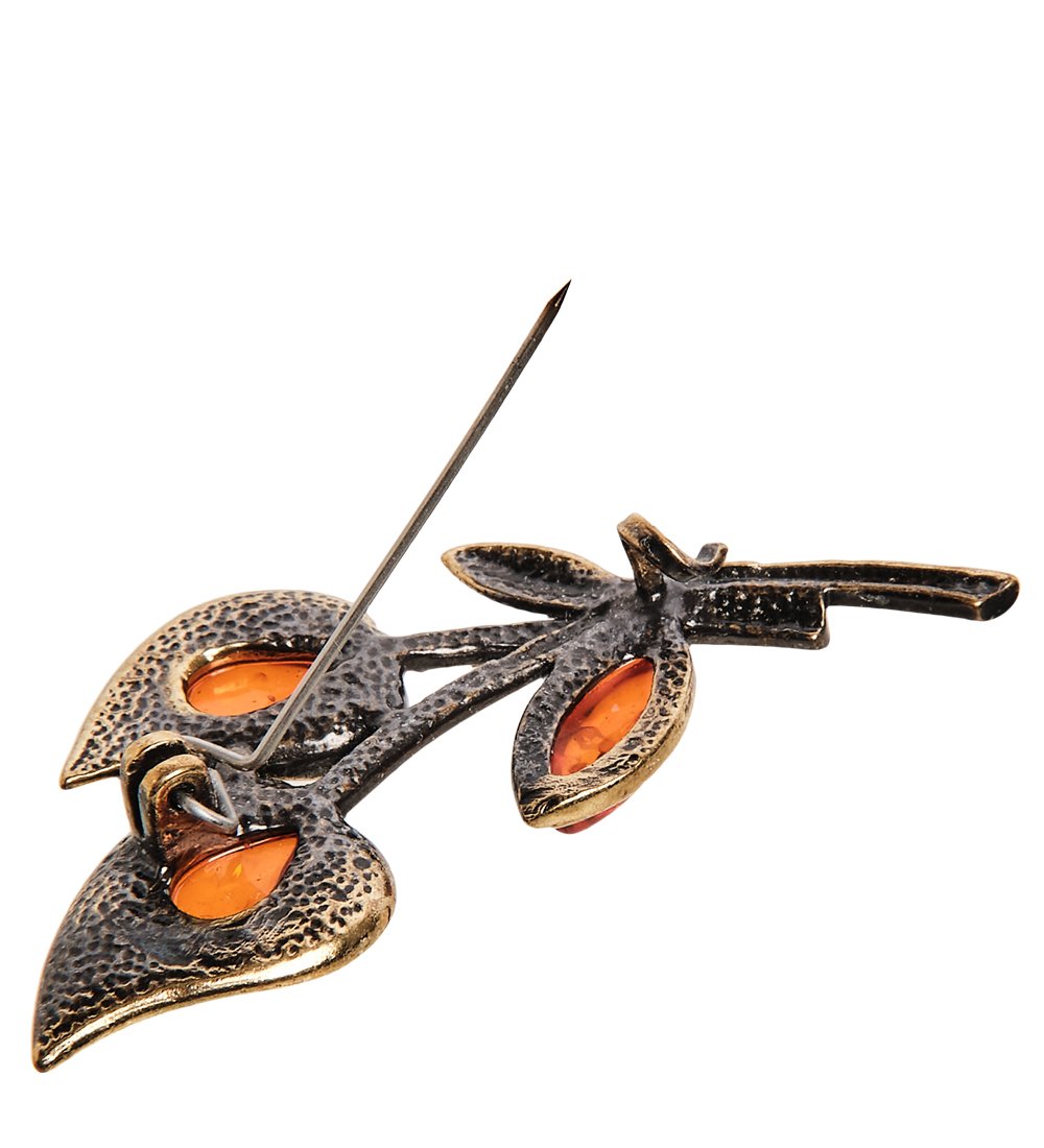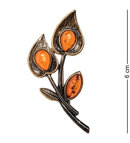 AM-2844 Брошь «Калла Дуэт» (латунь, янтарь)