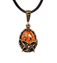 AM-2900 Подвеска «Овал Орхидея» (латунь, янтарь)
