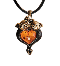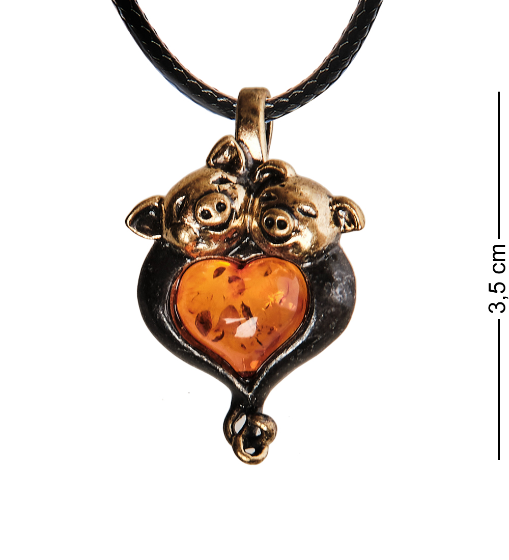 AM-2915 Подвеска «Поросята Любовь» (латунь, янтарь)