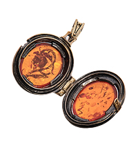 AM-2937 Подвеска «Медальон Цветок» (латунь, янтарь)