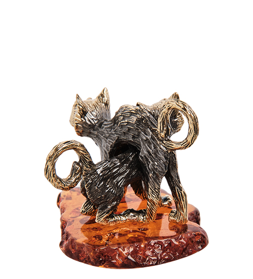AM-3107 Фигурка «Коты парочка Твикс» (латунь, янтарь)