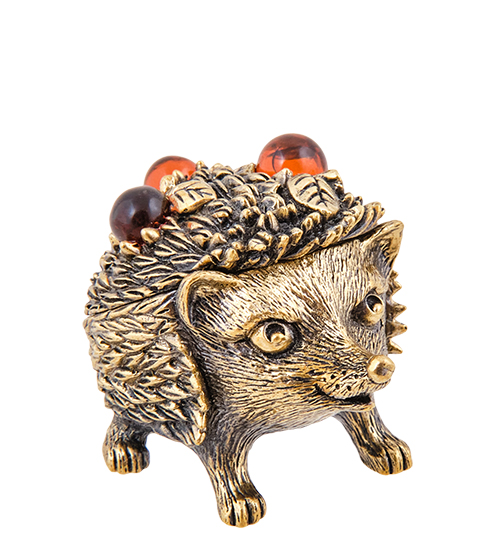 AM-3770 Шкатулка «Ежик Удача» (латунь, янтарь)