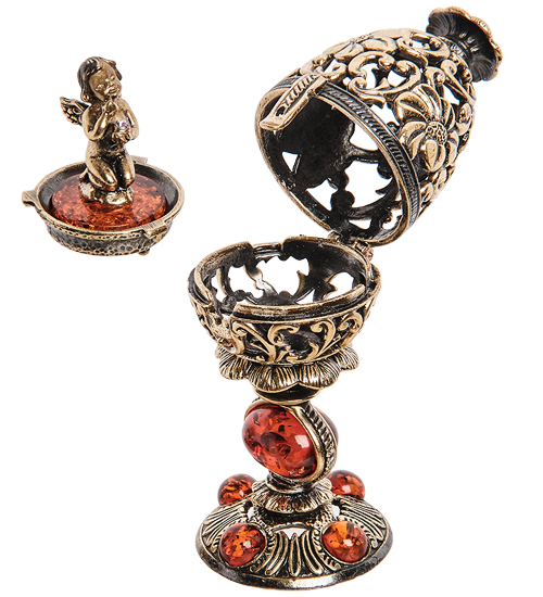 AM-3280 Фигурка «Яйцо с Ангелом» (латунь, янтарь)