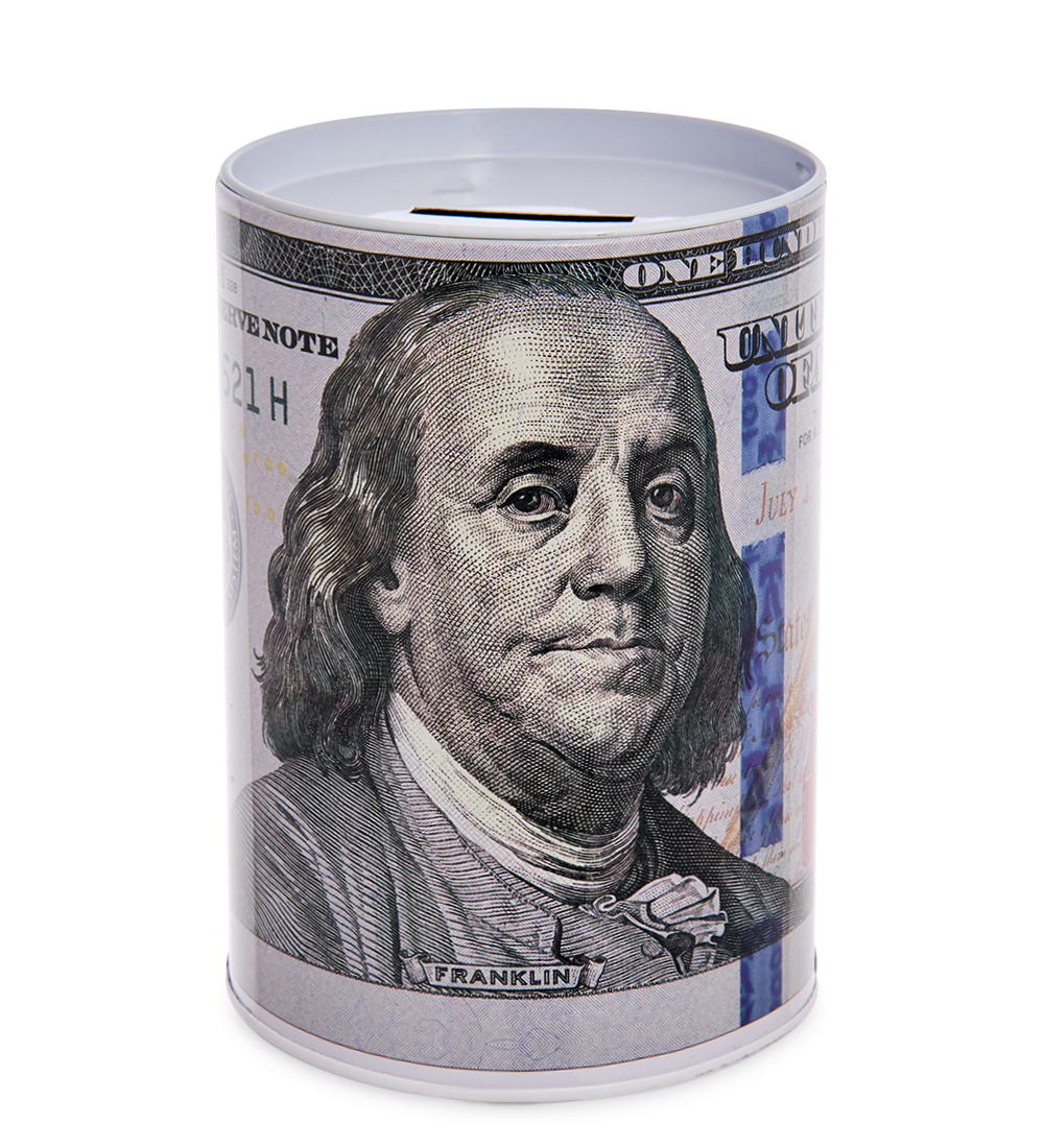 BX-220/1 Металлическая копилка «100 Долларов» 15см