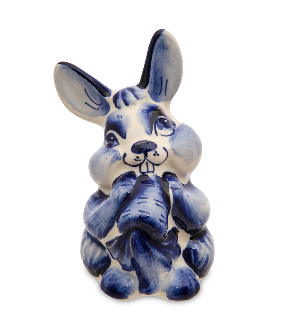 ГЛ- 820 Фигурка «Зайчонок с морковкой» (Гжельский фарфор)