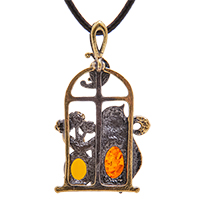 AM-3380 Подвеска «Кот под луной» (латунь, янтарь)