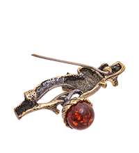 AM-3419 Брошь «Белочка с желудями « (латунь, янтарь)