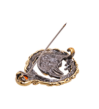 AM-3424 Брошь «Ворон Князь» (латунь, янтарь)