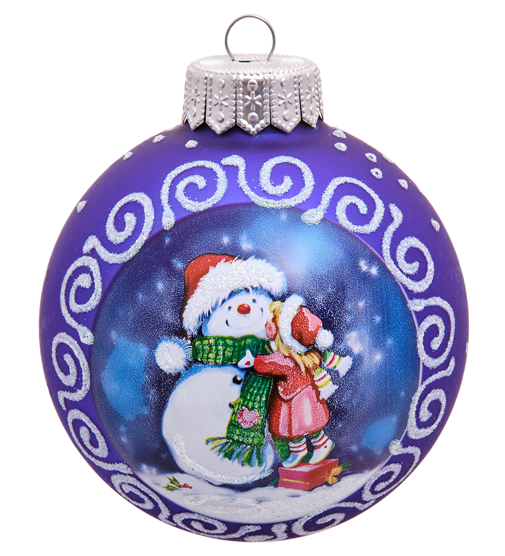 НФШ-1542 Ел.украшение Шар «Снеговик с девочкой» 100 мм
