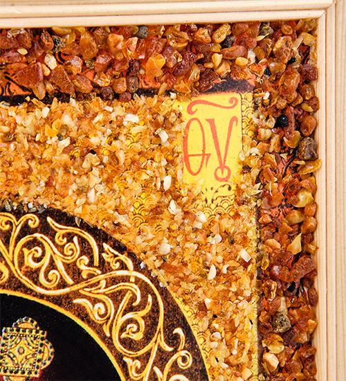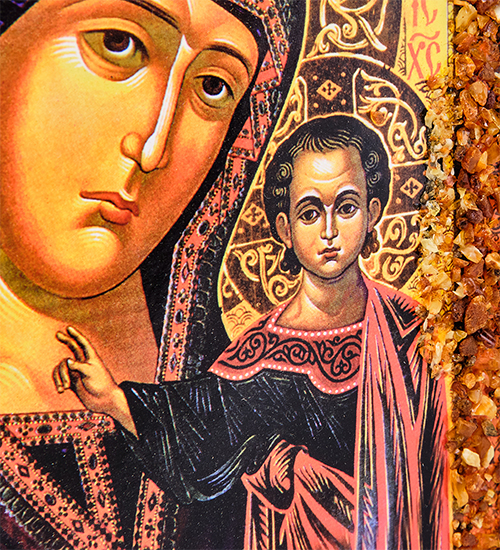 AMB-51/ 4 Икона Божией Матери «Казанская» (с янтарной крошкой) дер.рамка 21х30