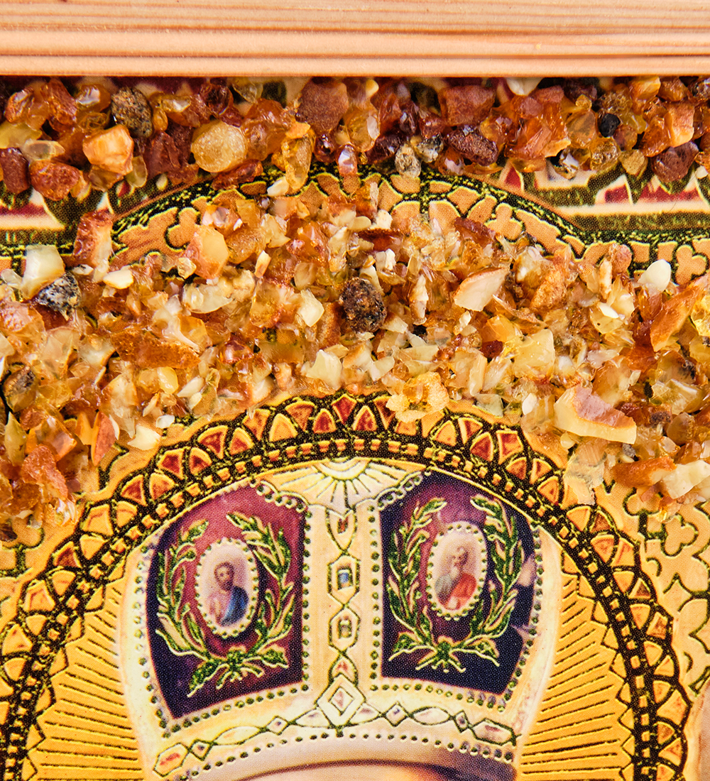 AMB-52/13 Икона «Николай Чудотворец» (с янтарной крошкой) дер.рамка 30х40