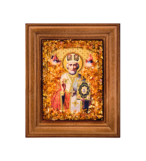 AMB-75/10 Икона «Николай Чудотворец» (с янтарной крошкой) дер.краш.рамка 7х9