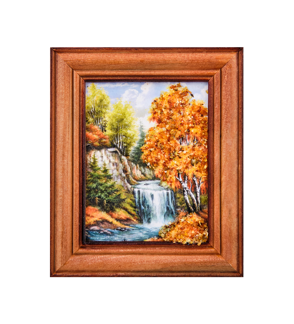 AMB-75/34 Картина «Водопад» (с янтарной крошкой) дер.краш.рамка 7х9