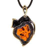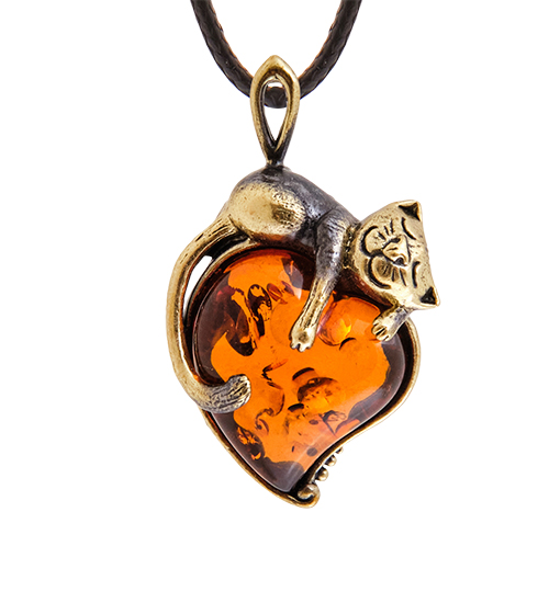 AM-3628 Подвеска «Кот Сердечный» (латунь, янтарь)