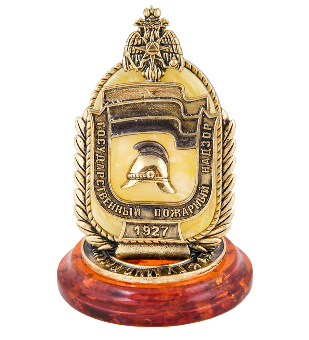 AM-3663 Фигурка «Знак Пожарного МЧС» (латунь, янтарь)
